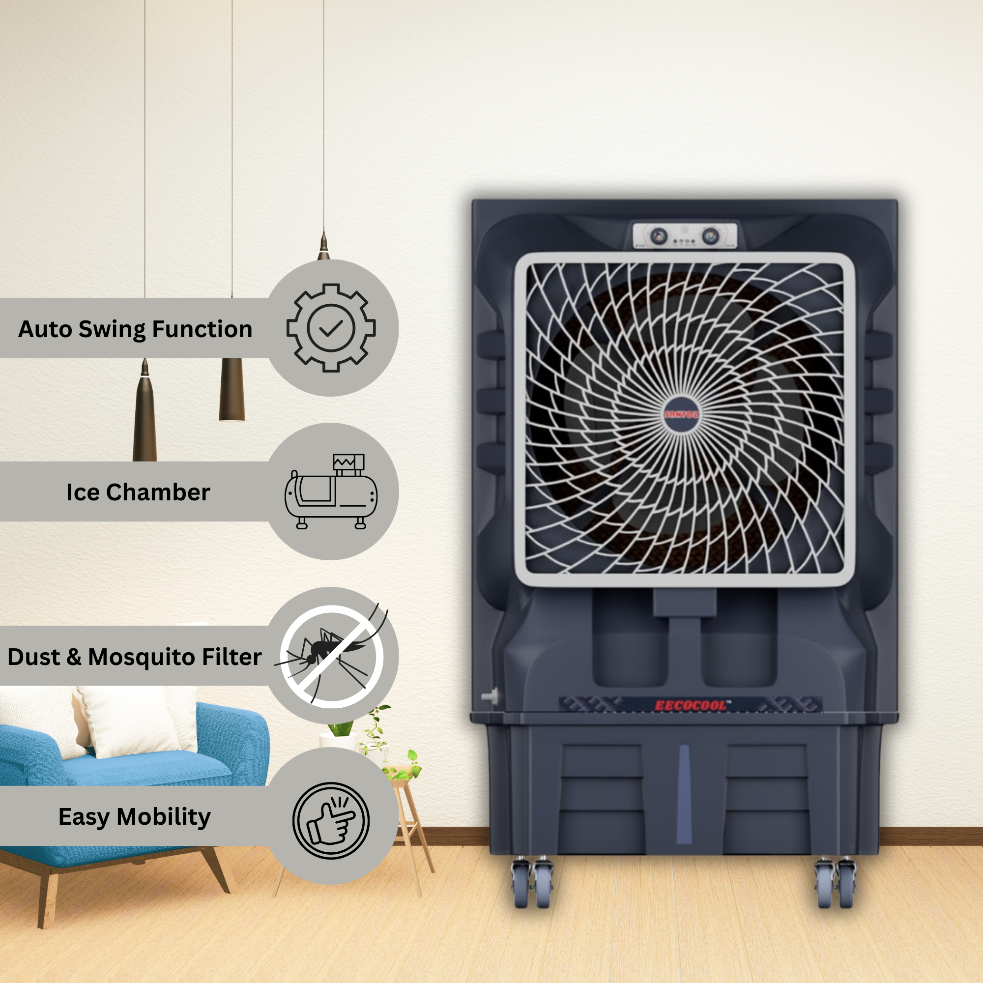 Stay cool and comfortable with the EECOCOOL 100L Chiller Model Air Cooler, designed for efficient cooling and superior airflow. With its large 100L water tank, this cooler provides long-lasting cooling without frequent refills, making it ideal for medium to large rooms, offices, and shops. The high-performance motor ensures powerful air circulation, while the honeycomb cooling pads enhance cooling efficiency. Built with a sturdy and energy-efficient design, this cooler is the perfect eco-friendly and cost-effective cooling solution for hot summers.